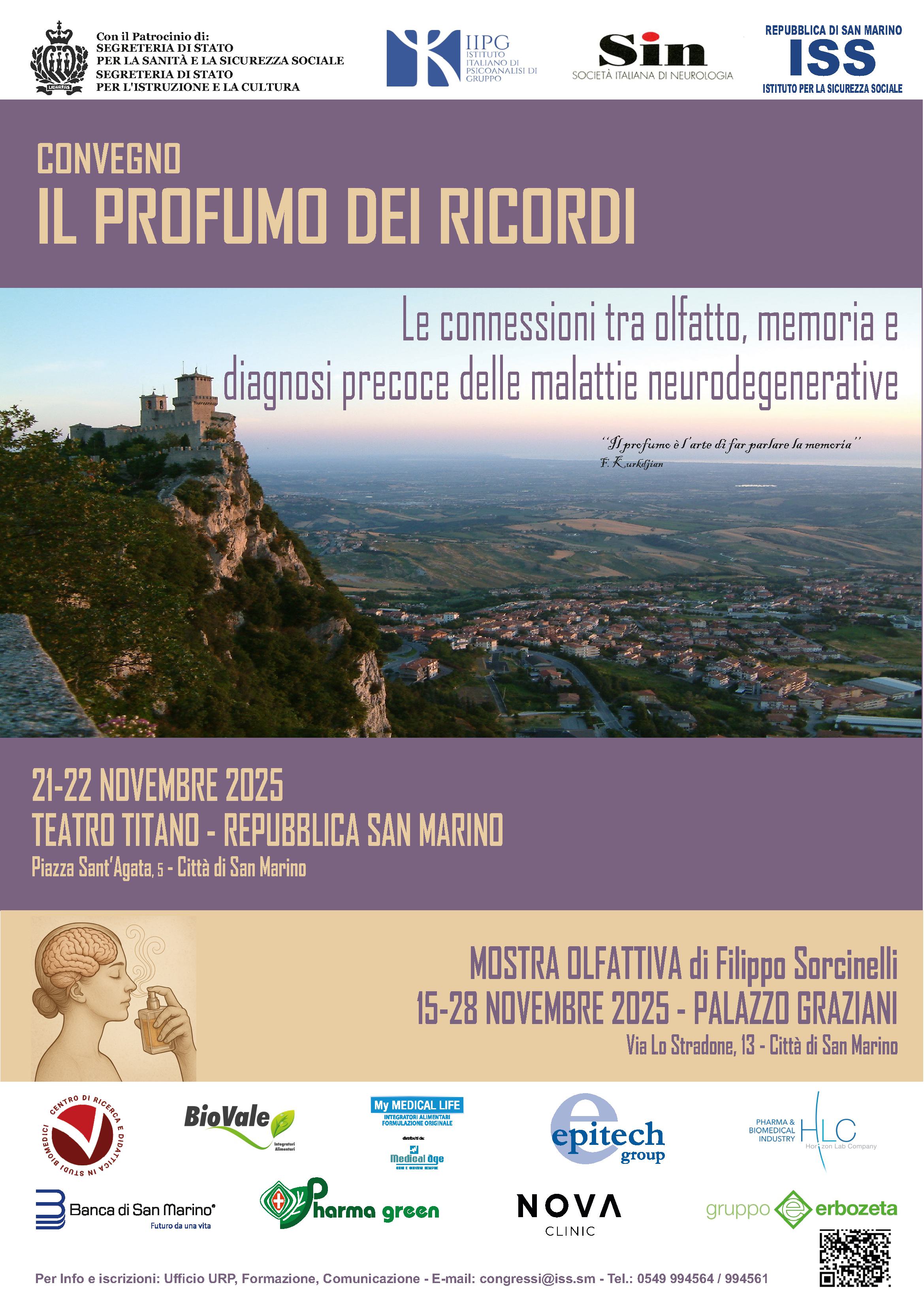 ![]() | Convegno Il Profumo dei Ricordi IL PROFUMO DEI RICORDI Le connessioni tra olfatto, memoria e diagnosi precoce delle malattie neurodegenerative |