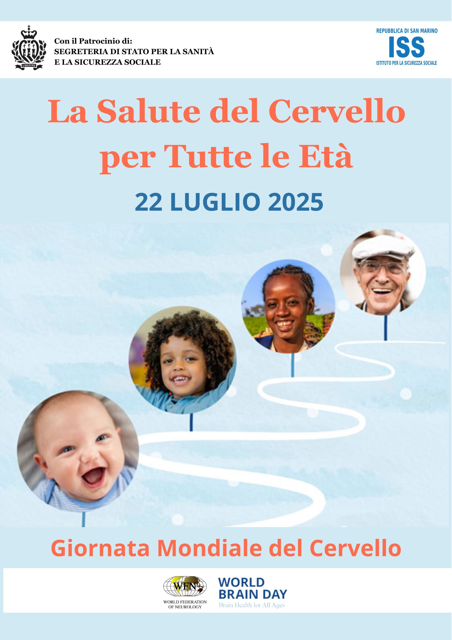 La Repubblica di San Marino aderisce alla Giornata Mondiale del Cervello, che si celebra il 22 luglio 2025, sostenendo il tema globale "Salute del Cervello per Tutte le Età" promosso dalla Federazione Mondiale di Neurologia (WFN).