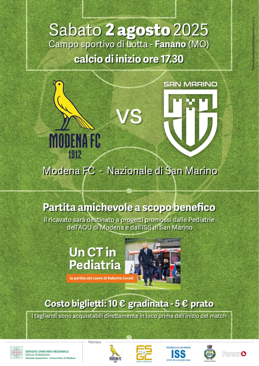 Amichevole tra Modena Calcio e Nazionale sammarinese per sostenere le pediatrie di San Marino e Modena