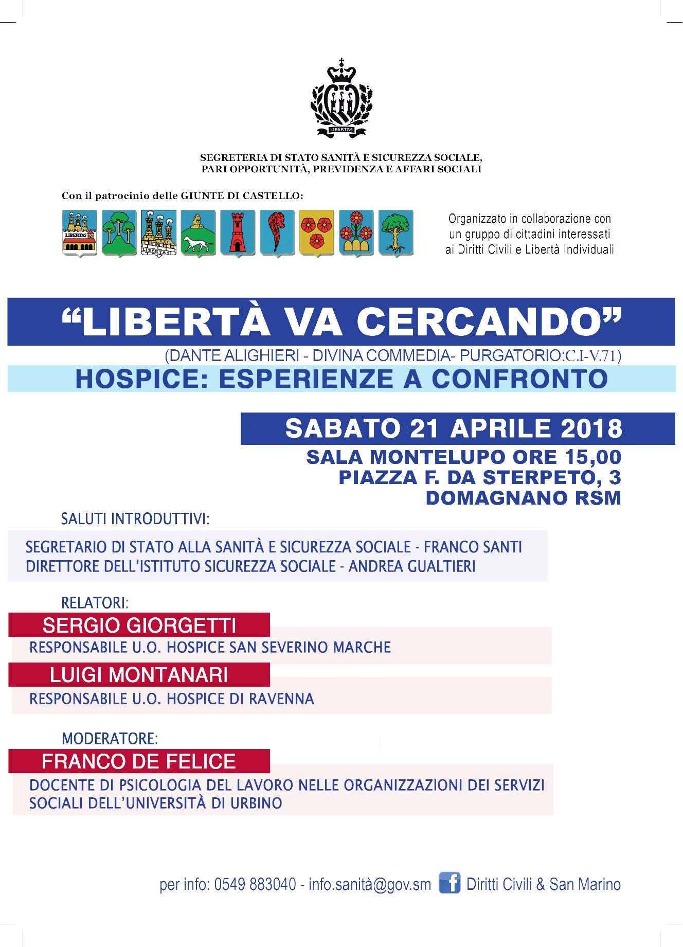 Sabato 21 Aprile ore 15, Sala Montelupo, Piazza F. da Sterpeto, Domagnano