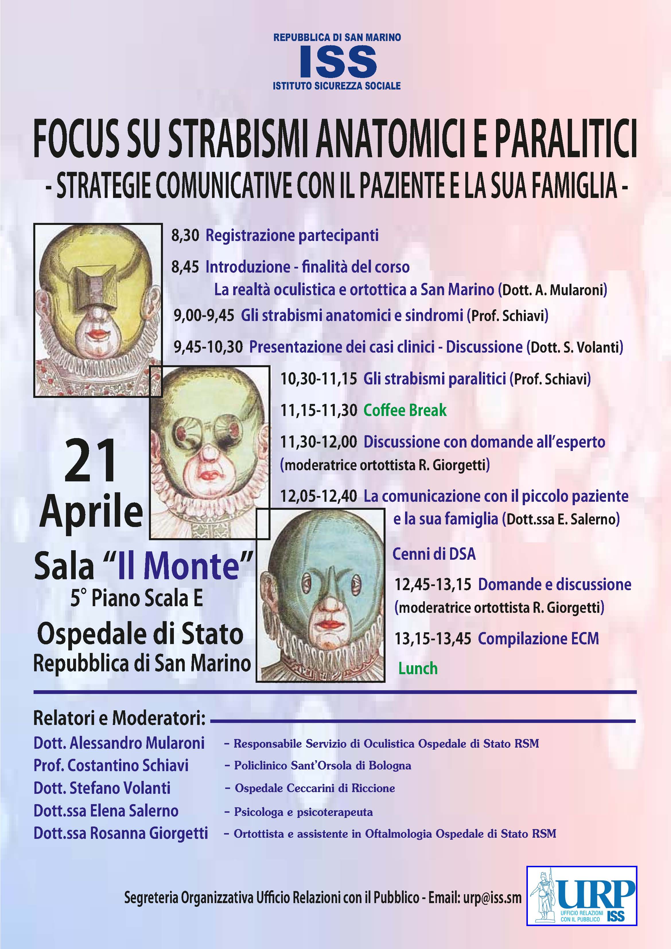 Sabato 21 Aprile dalle ore 8.30 alle ore 14.00 c/o Sala Riunioni "Il Monte" (5° Piano Ospedale di Stato)
