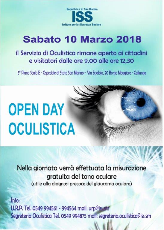 Sabato 10 marzo si terrà lOpen Day del Servizio di Oculistica dellOspedale di Stato. Si tratta di una iniziativa finalizzata a presentare alla cittadinanza e a tutti i visitatori i nuovi servizi e lattività che viene svolta in un servizio di recente potenziato come risorse e tecnologia. In occasione dellOpen Day, i professionisti e il personale di Oculistica diretti dal dr. Alessandro Mularoni saranno a disposizione di cittadini e visitatori dalle 9 alle 12:30 del mattino per illustrare attività e percorsi diagnostico - terapeutici del servizio.