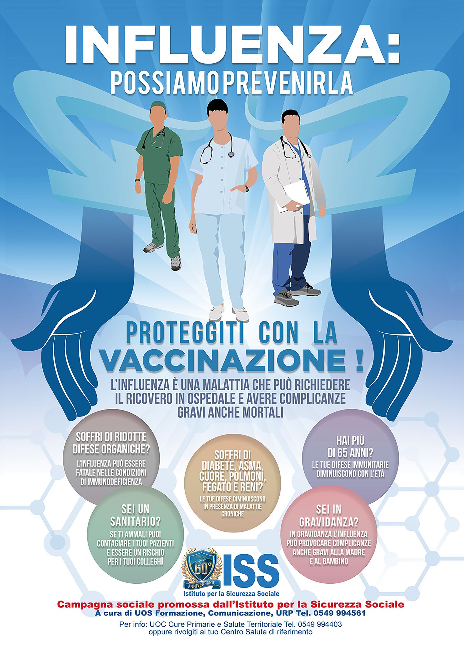 LIstituto per la Sicurezza Sociale informa la cittadinanza che da lunedì 6 novembre partirà la campagna vaccinale antinfluenzale su tutto il territorio sammarinese.