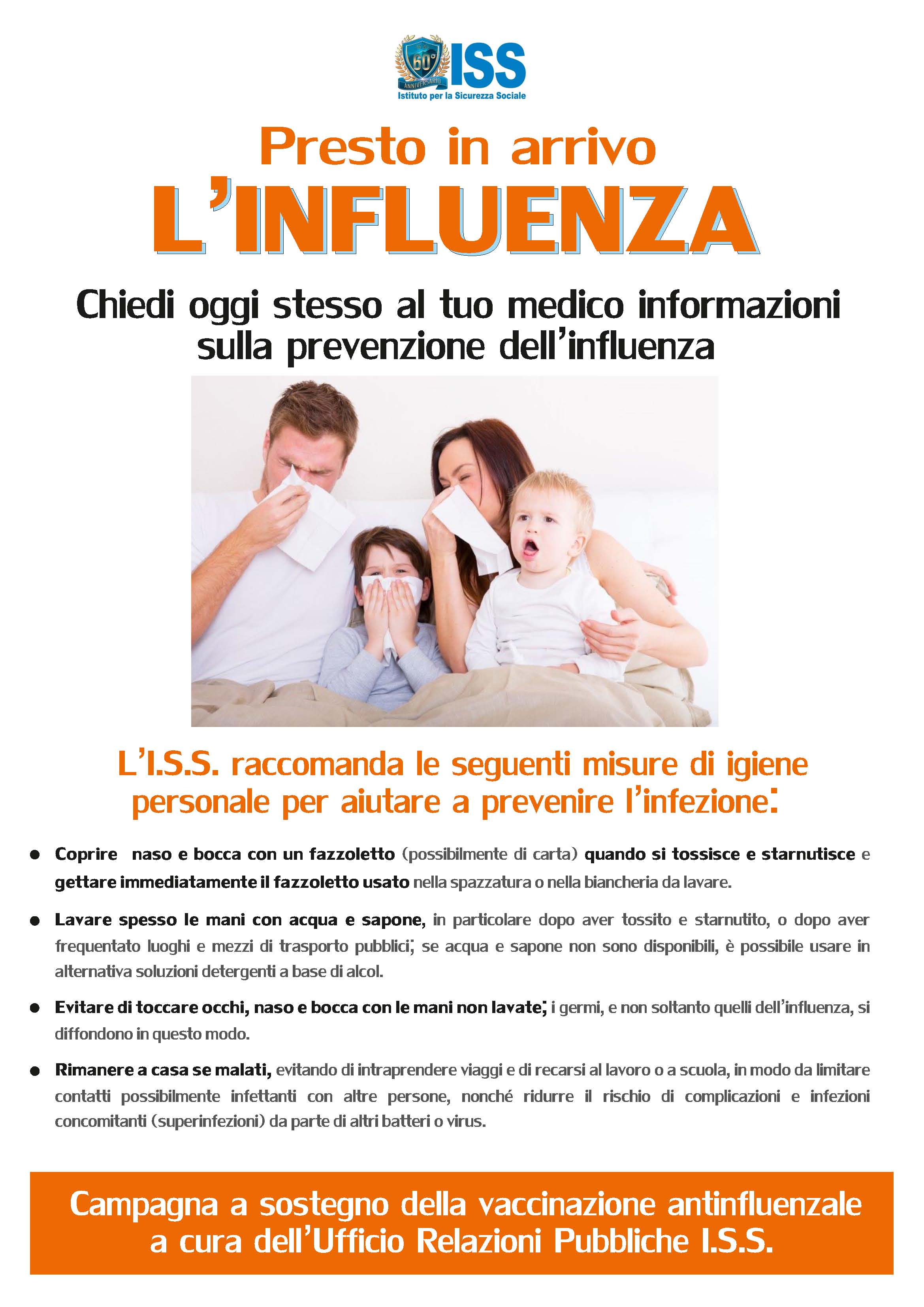 6 Novembre 2017 - Nell'ambito della campagna antinfluenzale, l'Iss raccomanda i comportamenti da adottare per contrastare la diffusione del virus, tramite il il manifesto "Presto in arrivo l'influenza" . Gli studi dimostrano che l'adozione di questi accorgimenti può prevenire del 30% circa il contagio e lo sviluppo della malattia.